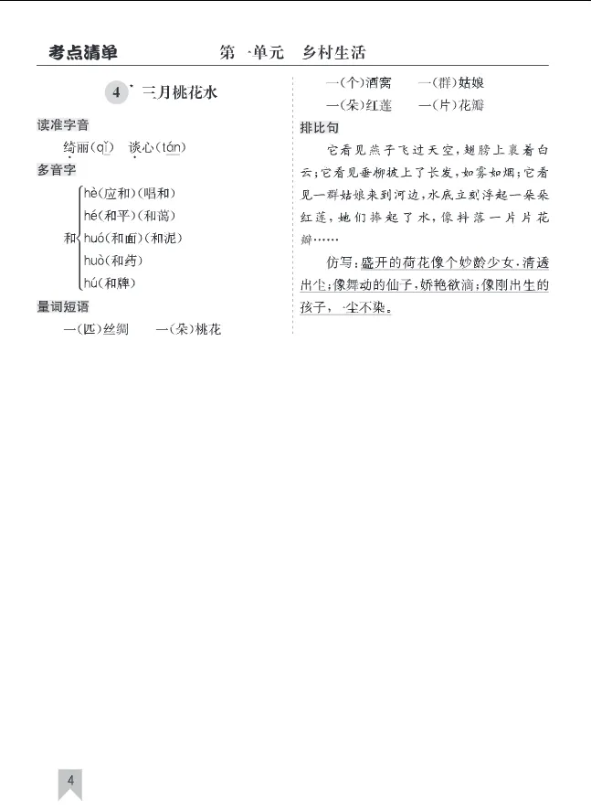 学习资料库 3-9【��核心考点清单语文26年4年级下册(共42页)】
