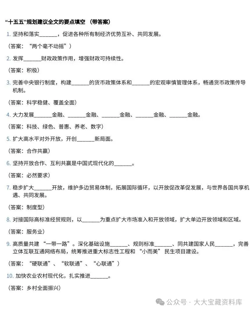 十五五规划全文| 原文PDF | “十五五”规划重点梳理汇总“ | 十五五”规划建议全文的要点填空