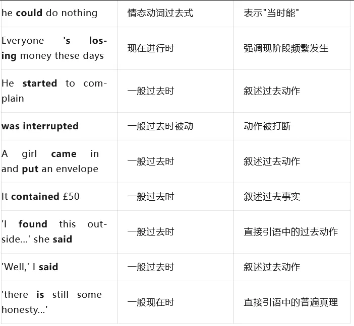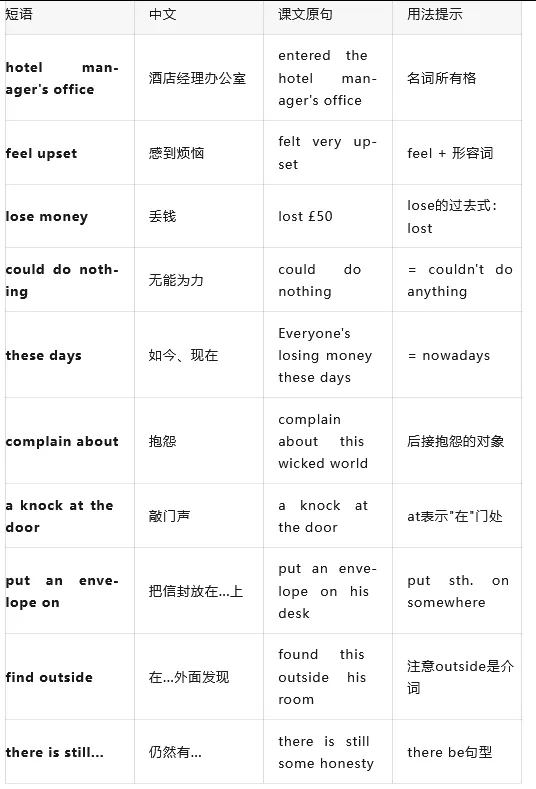 这是一个关于"失而复得"的温暖故事——作者丢了50英镑,去经理办公室求助。经理虽然同情,却也无可奈何,抱怨这世道太坏。正在这时,一个女孩敲门进来,把装钱的信封放在桌上——她是在作者门外捡到的!作者感慨道:"这个世界上还是有诚实可言的!"