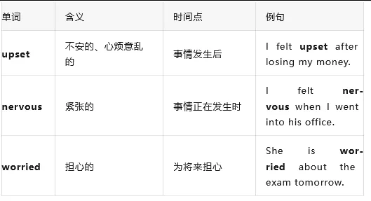 upset / nervous / worried 辨析