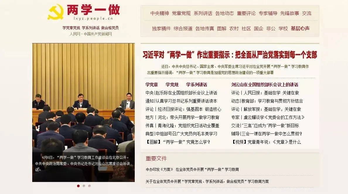 由人民网·中国共产党新闻网主办的“两学一做”学习教育专题网站(http://lxyz.people.cn)今日正式上线运行。