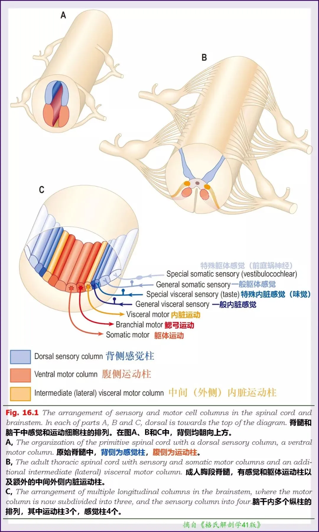 特殊内脏传入柱(Specialvisceral afferent column):从位于鳃弓内胚层的味蕾taste buds接收。