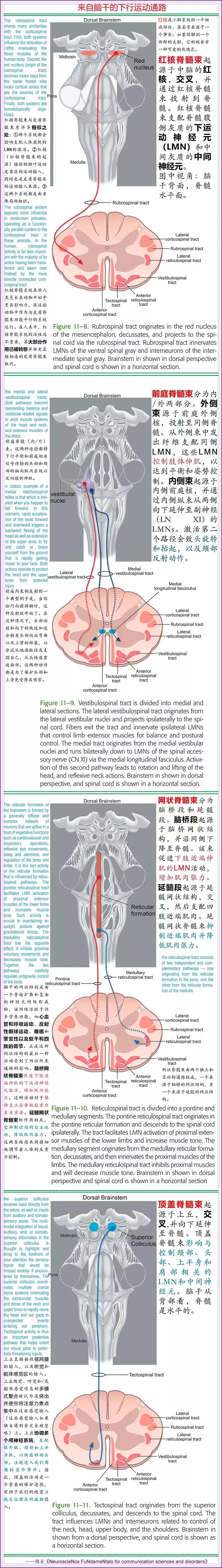 从脑干到脊髓的4条下行通路(顶盖脊髓束、红核脊髓束、网状脊髓束、前庭脊髓束);