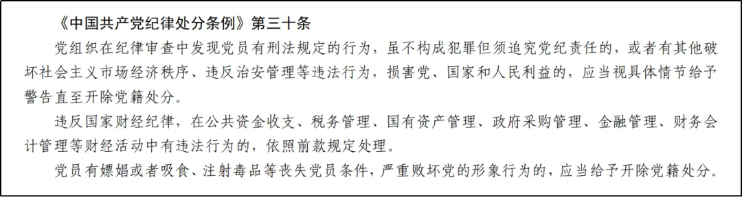 第三种:根据党纪处分条例第三十条规定的情形,应当视具体情节给予警告直至开除党籍处分。