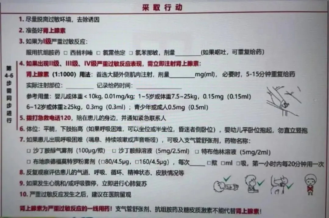 Ø强调在严重过敏反应发生时快速启动治疗