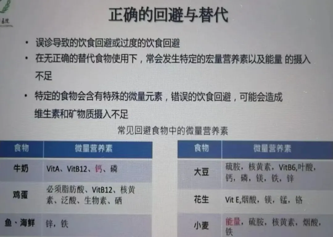 Ø正确的食物回避及替代