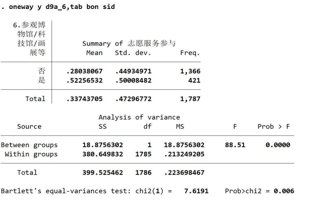 如果想同时分析 “是否参观博物馆 + 是否参与在线教育” 对因变量的影响,可升级为 “双因素 / 多因素 ANOVA”,检验主效应 + 交互效应。