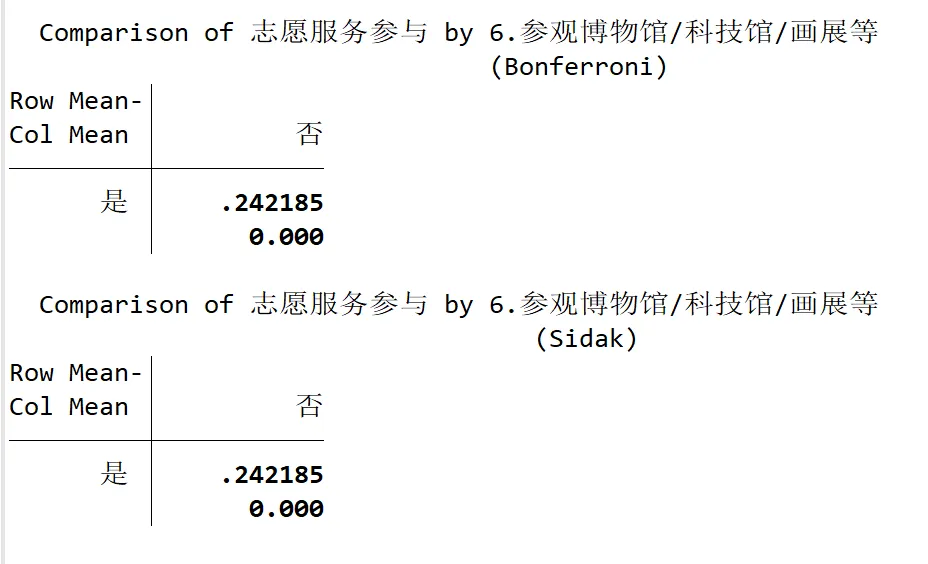 如果自变量有 3 + 分组(比如 “从不 / 偶尔 / 经常参观博物馆”),ANOVA 只告诉你 “组间有差异”,而 Bonferroni/Sidak/LSD 等事后检验能精准定位 “哪两组差异显著”。