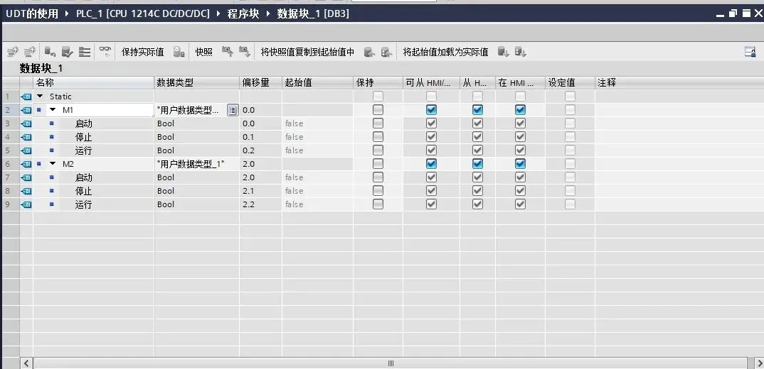 P#DB3.DBX0.0是指针格式。表示是从DB3.DBX0.0开始的。到底什么时候结束。是由UDT的长度决定的(由M1里边有多少个变量决定的).