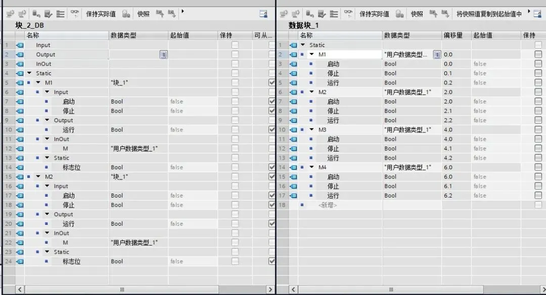 多重背景只是2个DB块。共享DB块不仅是多重背景里边的2个,包括了FB1和FB2的两个FB1(4个FB1)。所有数据都可以在共享数据块里监控。
