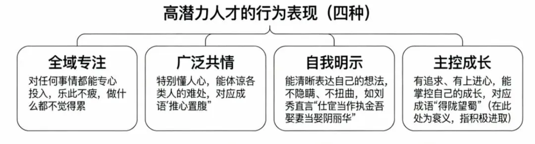高潜力人才的行为表现,正是这两种特质的自然流露: