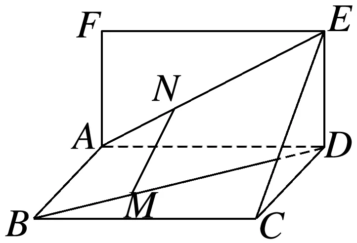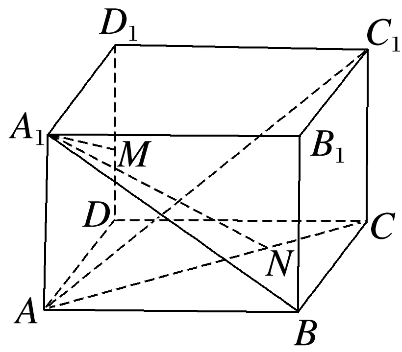 例2 (1)如图所示,在长方体ABCD-A1B1C1D1中,M为DD1的中点,N∈AC,且AN∶NC=2∶1,求证:A1,B,N,M四点共面.