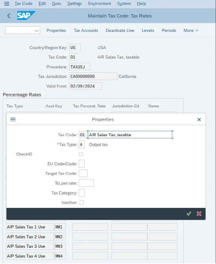 在 SAP S/4HANA 中,税务代码决定了税务百分比和过账的税务科目,并在文档的行项目级别进行分配。税务代码是按税务程序创建的,既可以自动确定(通常在物流文档中),也可以在财务文档中手动输入。让我们来逐步了解如何为税务程序 TAXUS 创建税务代码。首先,按照菜单路径“财务会计 • 财务会计全局设置 • 销售/采购税 • 计算 • 定义销售和采购的税务代码”操作,或者输入事务代码“FTXP”。系统会询问您要在哪个国家创建税务代码。输入“美国”并继续。然后,输入一个两位字符的税务代码。税务代码的命名在项目内应该保持一致,并且有几种不同的策略可供选择。一些公司选择以字母作为第一个符号,数字作为第二个符号,字母表示该税务代码是进项税代码还是销项税代码。无论您采用何种命名约定,都必须确保命名范围中有足够的空间来容纳所有所需的税务代码。一个国家通常会使用 30 到 40 个税务代码,有时甚至需要更多。在这种情况下,让我们将新的税务代码命名为“O1”,以表示 10% 的销售税,如下图所示。“O”表示该税务代码是销项税代码,而我们的进项税代码则以“I”开头。各种税务代码,如 O1、O2、O3 等,将代表不同税率或用途的销项税代码。输入税务代码编号后,系统会打开新税务代码的属性屏幕。在这个屏幕上,您必须选择该税务代码是进项税代码(用于采购交易)还是销项税代码(用于销售交易)。为税务代码添加描述,并定义其他可选设置。例如,“CheckID”指示符可确保在输入的税额不正确时显示错误消息。“欧盟代码/代码”设置用于欧盟报告。点击“继续”后,您将看到新税务代码的主配置屏幕。下图显示了为其创建税务代码的税务程序可用的条件类型。对于美国,我们将使用带有管辖区代码的计算程序:为每个管辖区(在本例中为加利福尼亚州)输入税率。条件类型与科目键(在我们的示例中为科目键 NVV)进行映射,这些科目键决定了要过账的总账科目。您可以在一个或多个条件类型级别输入税率。系统在确定适当的税款时会遍历税务代码的所有级别。您还可以通过点击顶部菜单中的“税务科目”来查看分配的总账科目。然后,系统会要求输入科目表,并显示将从该税务代码接收过账的总账科目(见下图)。你若喜欢,点个❤️谢先👇