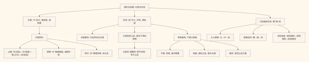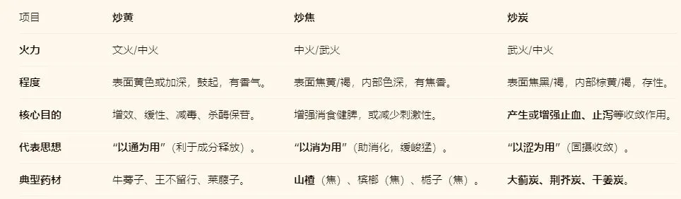 4.横向对比串联:将炒黄、炒焦、炒炭视为一个火力与药效变化的连续谱系,理解其内在逻辑。