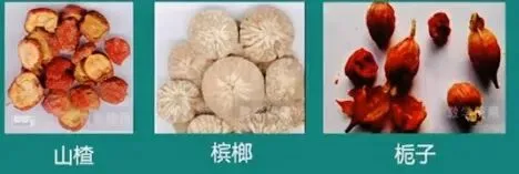 3.炒焦代表药材:山楂、槟榔、栀子。
