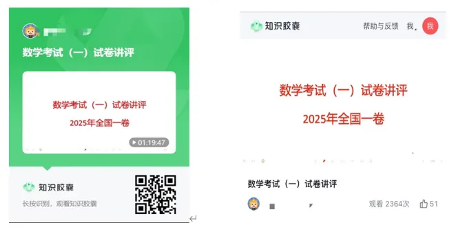 去年暑假,我把2025年各省高考数学真题完整做了一遍,并录制了2025年全国一卷的讲解视频,视频有两千余人次观看,可扫二维码听讲。这个过程让我对“高考到底考什么”有了更深的体会。最近开始研读《高考蓝皮书·高考命题研究与应用》,读到“关键能力在高考数学学科的体现”这一部分,很多做题时的感受被系统梳理出来,也对我的课题研究有了新的启发。一、什么是关键能力