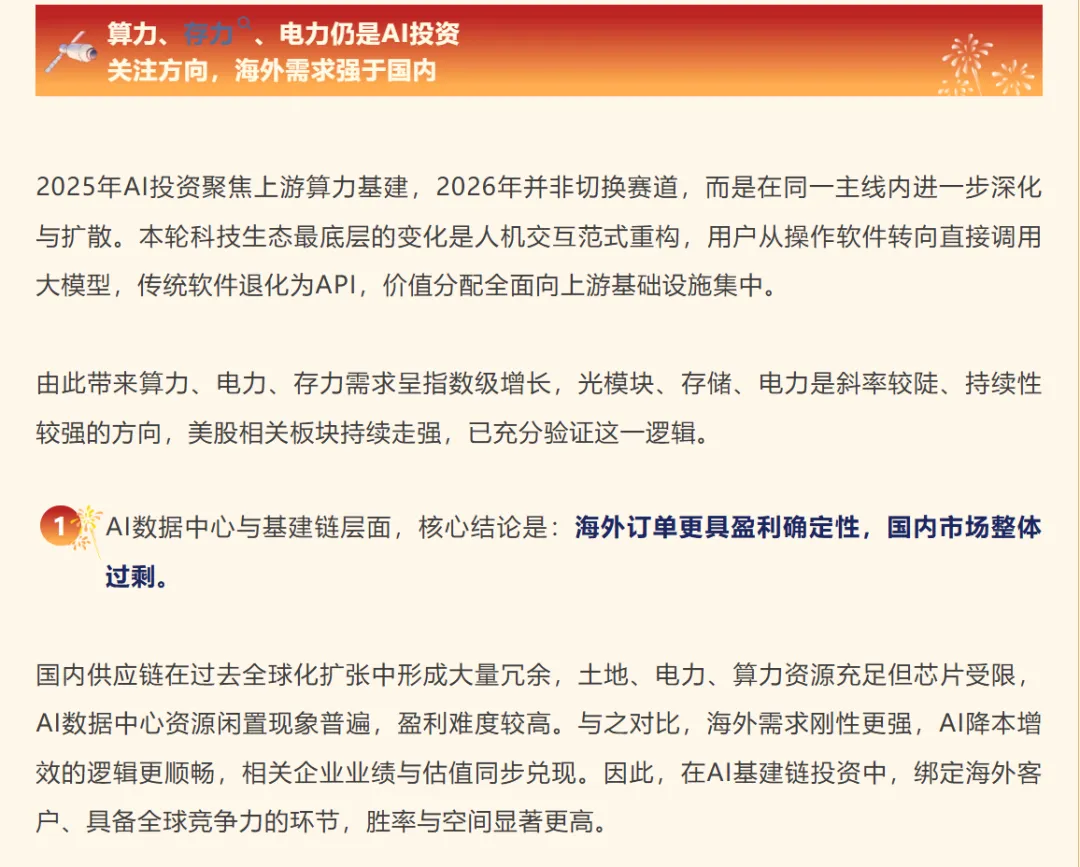 算力、存力、电力仍是AI投资关注方向,海外需求强于国内