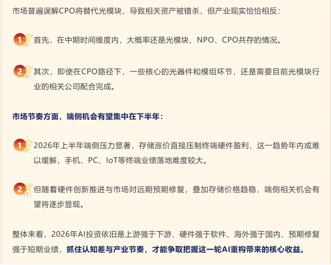 2但随着硬件创新推进与市场对远期预期修复,叠加存储价格趋稳,端侧相关机会有望将逐步显现。