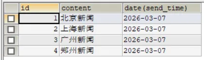 -- 显示所有留言信息,发布日期只显示日期,不用显示时间SELECT id, content, DATE(send_time) FROM mes;