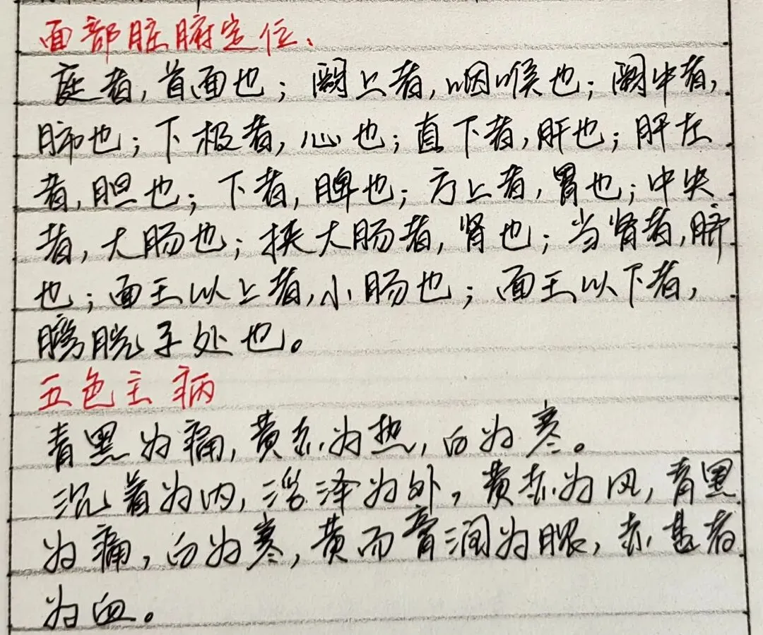《灵枢·五色》是中医望诊(面诊)的核心经典,以下是考试必考、临床必用、必须原文背诵的段落:第一部分:面部脏腑定位(地图)