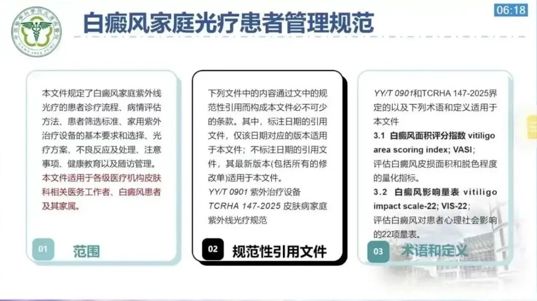 《白癜风患者家庭光疗管理规范》团体标准制定与解读,主讲人:顾恒 教授。