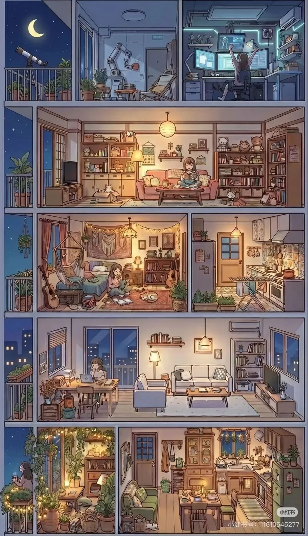 最近好喜欢网上一个博主用AI做的“女生宿舍”系列漫画,所以开始研究怎么用AI做出同款的女生公寓。在这里收集可以生成类似这样漫画图的提示词下面👇这两张就是我很喜欢的网上女生宿舍漫画图,这种微缩生活好让我着迷😍!