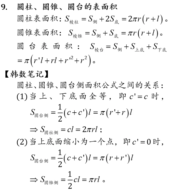 >数学学习笔记-高中-空间图形的表面积