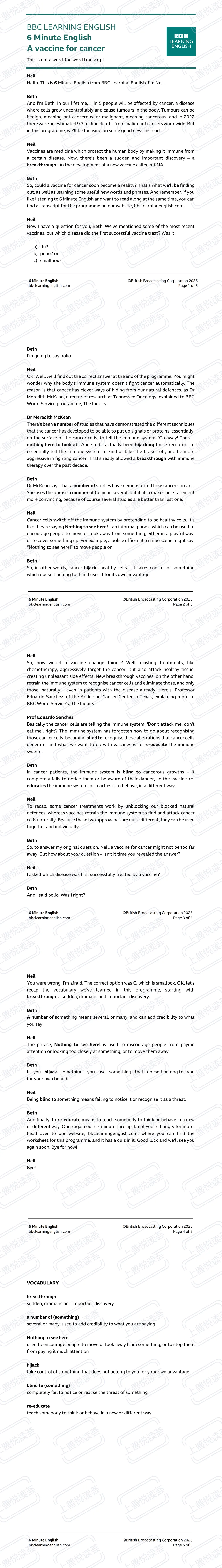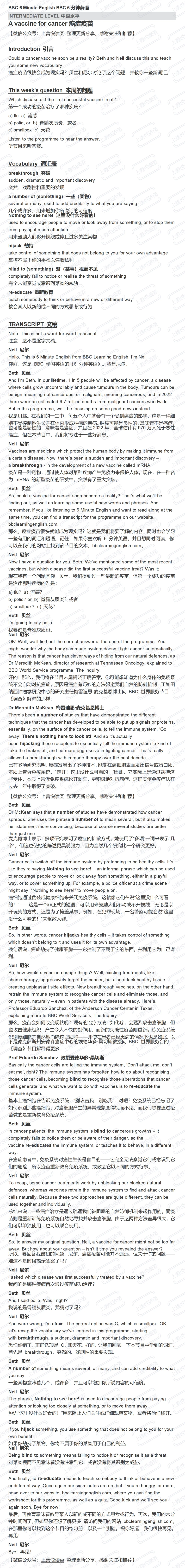 📚 《BBC6分钟英语:癌症疫苗》学习笔记