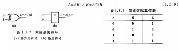 4. 同或运算:输入变量状态相同时,输出为1;输入状态不同时,输出为0(异或运算的反运算);