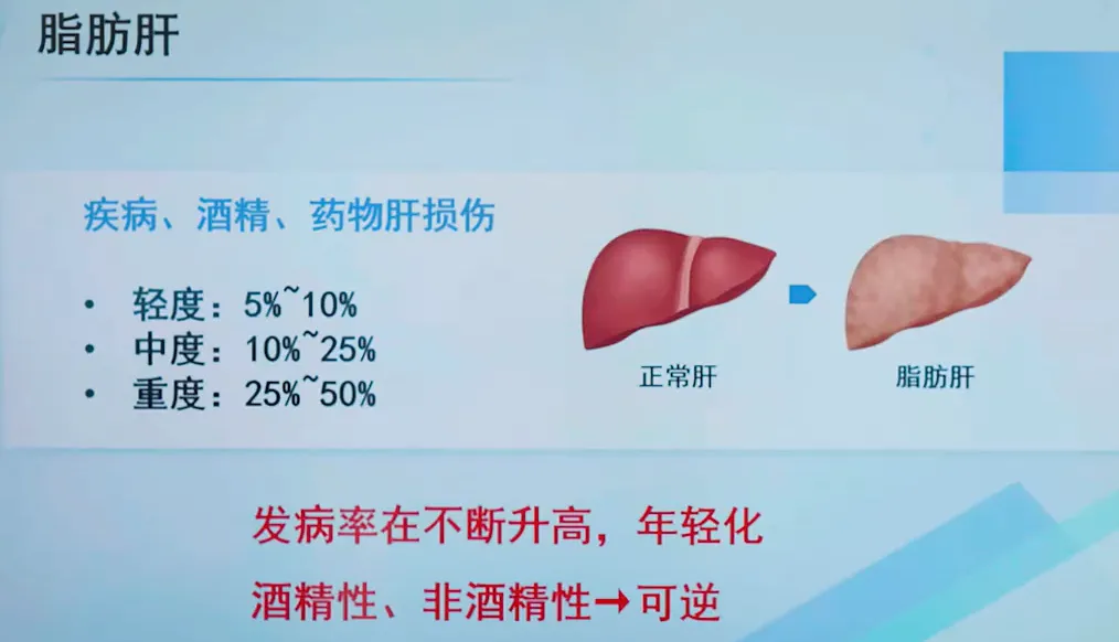 - 重度脂肪肝:脂肪含量占肝重>25%