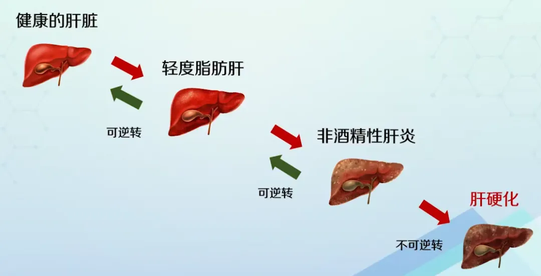 - 脂肪肝可逆,肝硬化不可逆,早干预、早调理是关键;