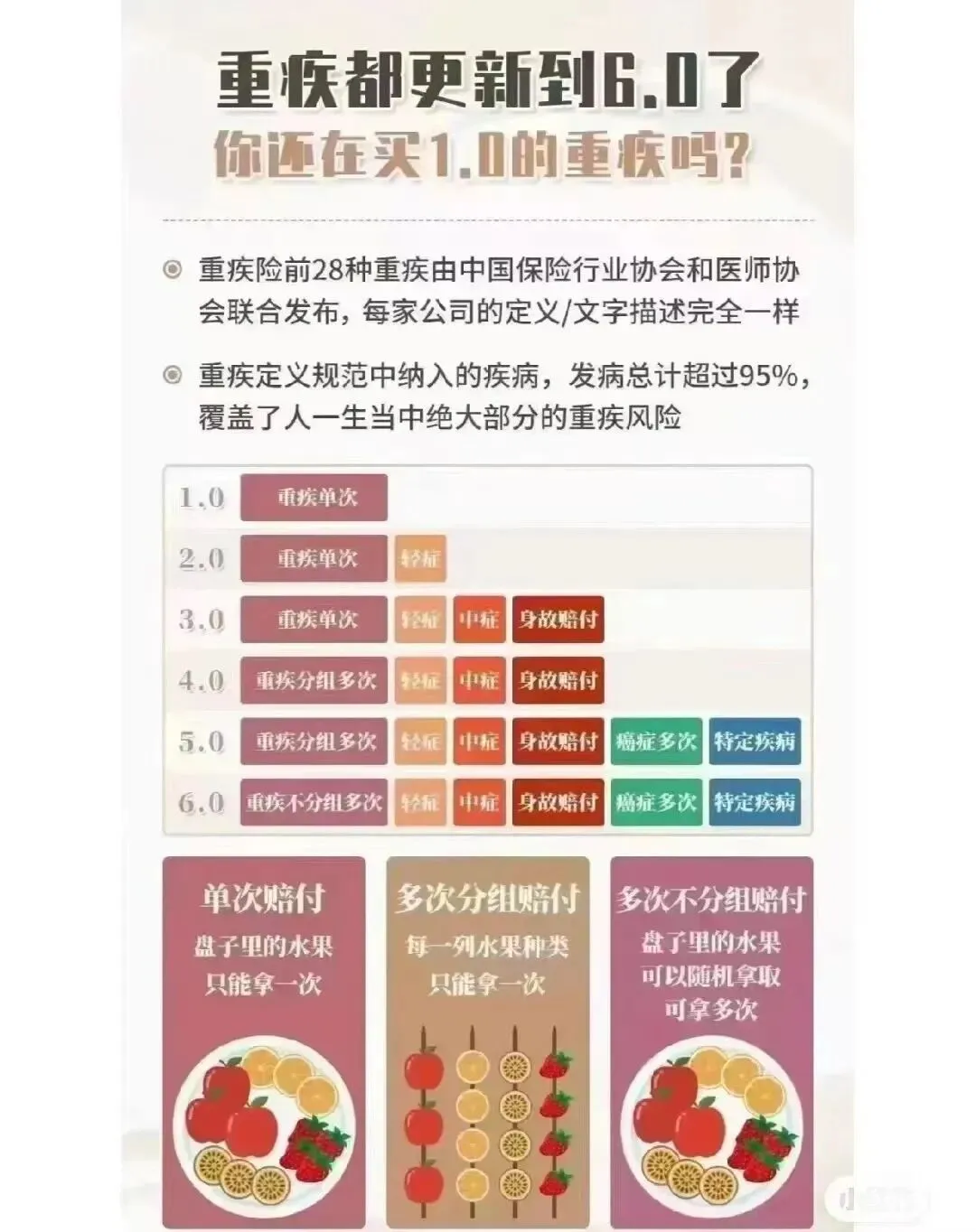 我们大致把重疾险分为这三代,如下方图片所示