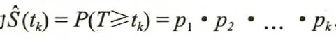 利用tk时刻之前各时间点上的条件生存率的连乘积来估计在时刻tk的生存率