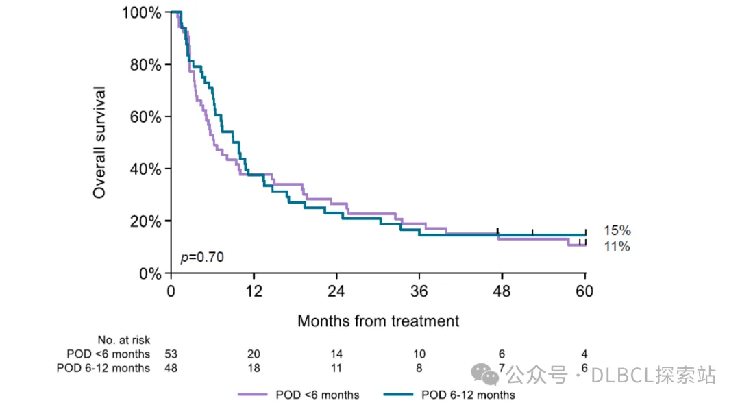 在本图中,POD 6-12months和POD <6months的五年生存率分别为11%和15%。