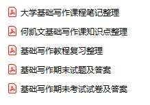 今天分享的资料是「0634-基础写作教程」电子版+学习笔记+知识点总结+期末考试重点+复习资料+习题集及答案+名词解释+历年真题试卷及答案+题库及答案+复习重点+思考题及参考答案+公式总结+考试重点基础题+知识总结+高清PDF可打印+免费分享!