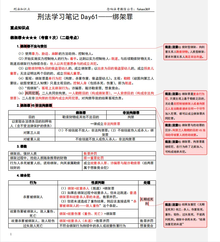 >刑法学习笔记Day61——绑架罪