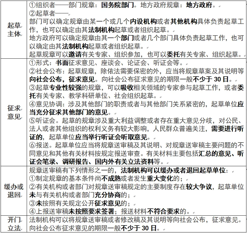 行政规章制定程序(二级考点)