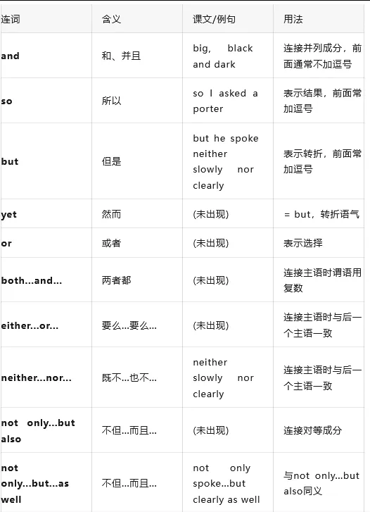 并列连词一览(本课核心语法)