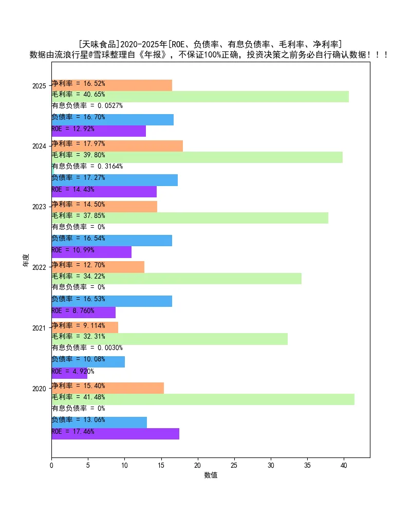 ✂️---竞争格局观察 调味品赛道,光上市公司,就有很多家,竞争肯定是跑不掉的。赛道属性不错。✂️---财务指标打分 除了ROE略低,几乎没有瑕疵,赛道优势★★★✰✰:ROE ★★★★★:有息负债率 ★★★★★:分红比例 ★★★★★:现金流占净利润百分比 ★★✰✰✰:毛利率 ★★★✰✰:净利率 ★★★✰✰:固定资产占净资产百分比 ★★★★★:应收账款占营业收入百分比 打分:77.5