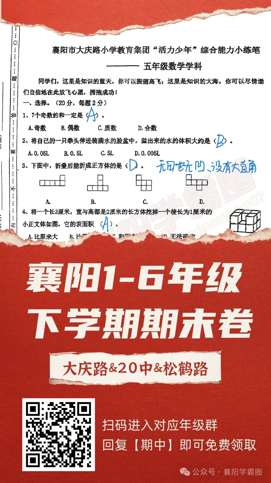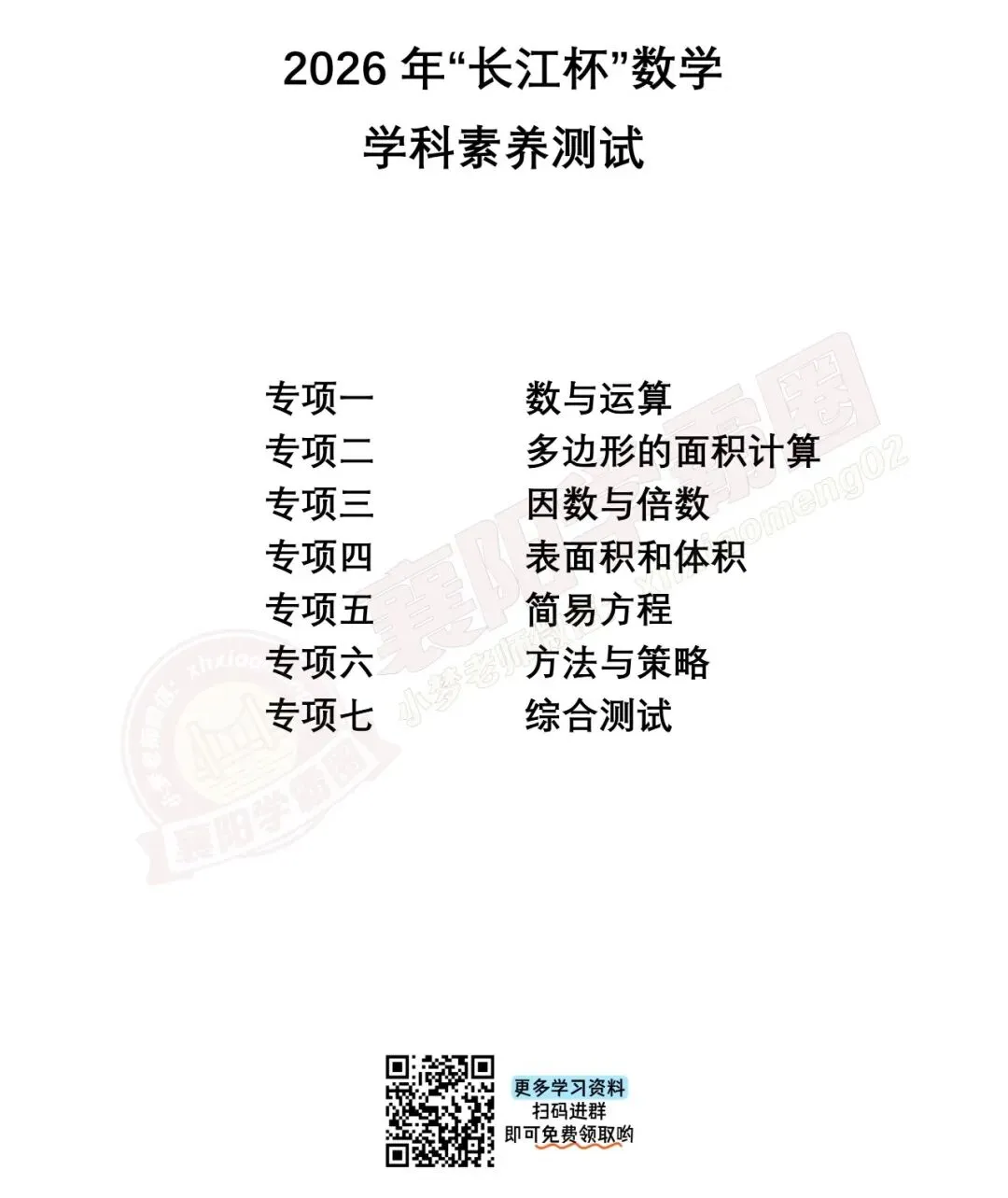 2026年5年级长江杯学习资料的答案来喽~因篇幅有限,只能展示部分,需要的家长可以扫码进群回复【资料答案】,即可免费领取完整pdf版+答案!更多学习资料,持续更新中…