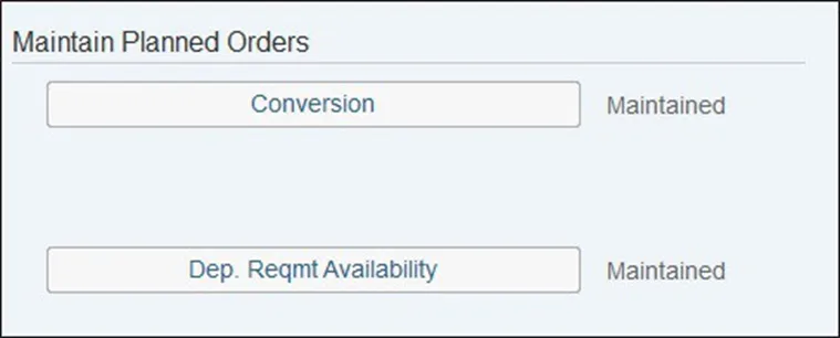 工厂参数总体维护配置下另一部分与计划订单相关(见下图)。此处的两个配置点都与将计划订单转换为生产/流程订单或采购申请有关。