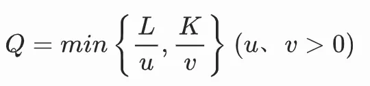 特征:两要素投入比例固定(K/L=v/u),等产量曲线为直角折线;