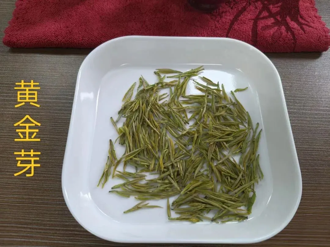 - 外形:干茶金黄润亮,条索细秀挺直,具备干茶黄、汤色黄、叶底黄的“三黄”特征,形似金枝玉叶。