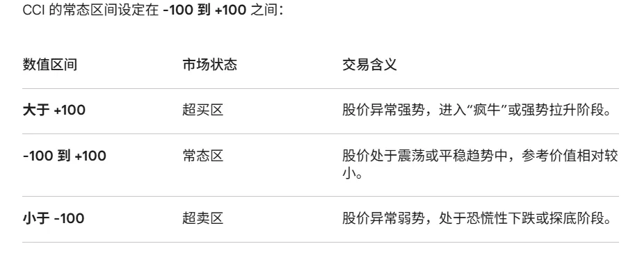 1、CCI的常态区间在±100之间。