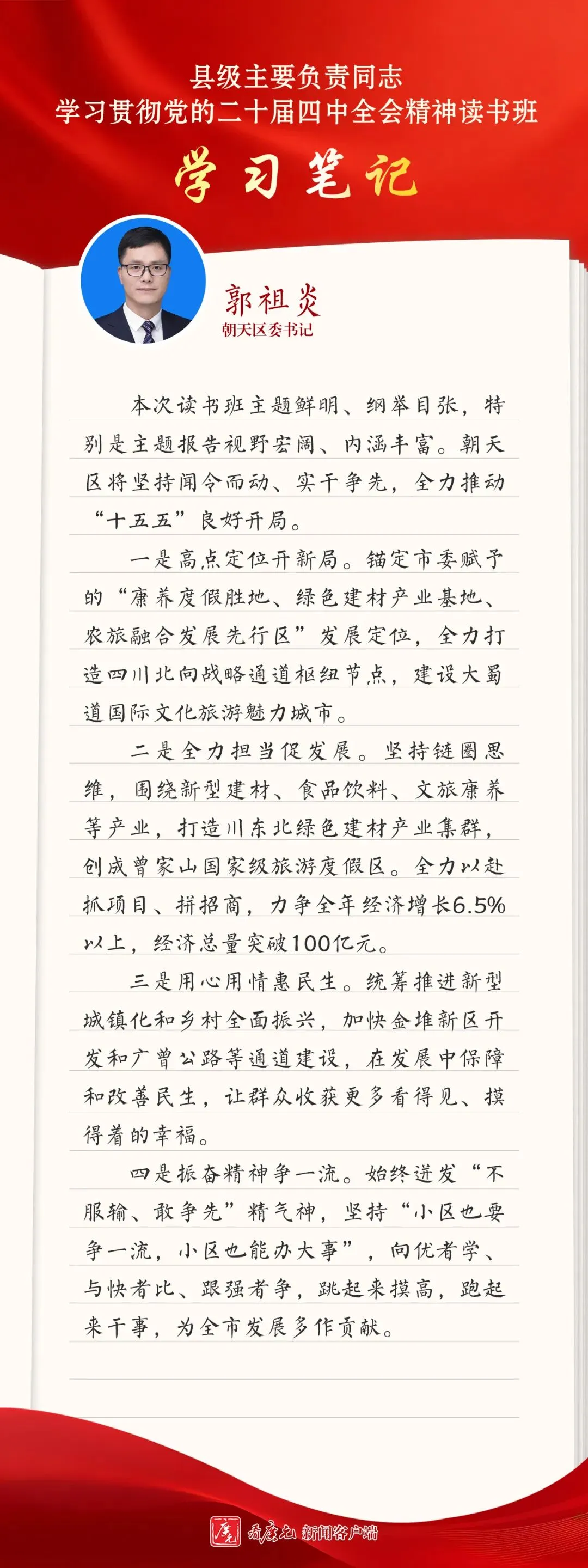 >读书班学习笔记|朝天区委书记 郭祖炎:奋进十五五 实干开新局