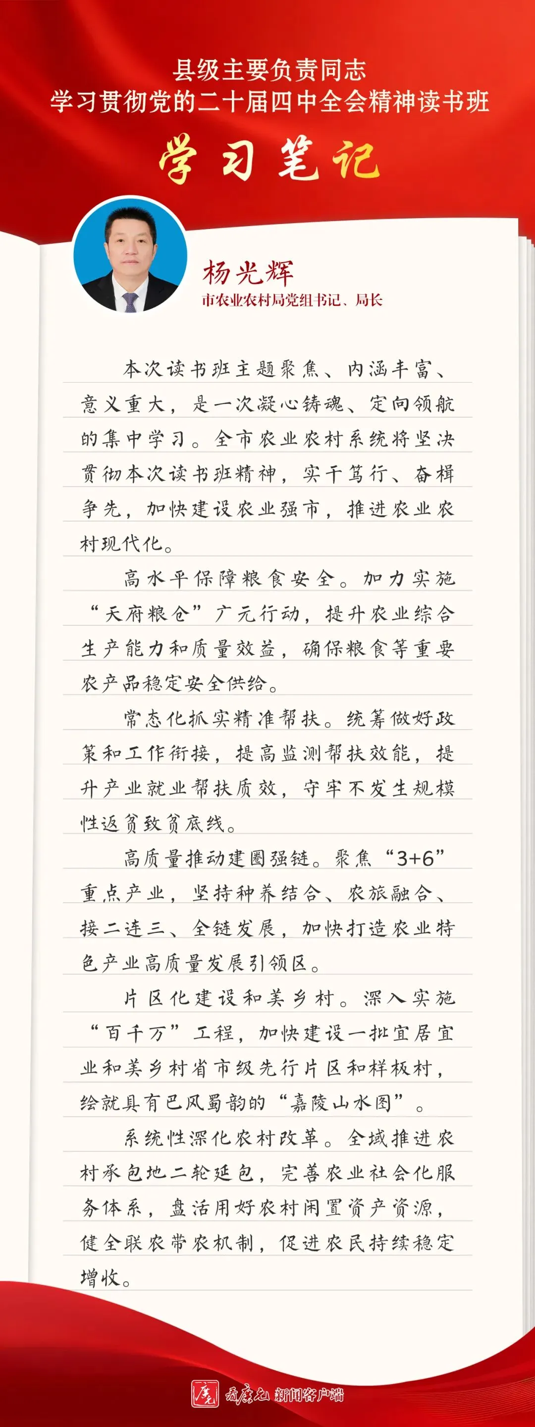>读书班学习笔记|市农业农村局党组书记、局长 杨光辉:筑牢农业强市建设根基 奋力实现“十五五”良好开局