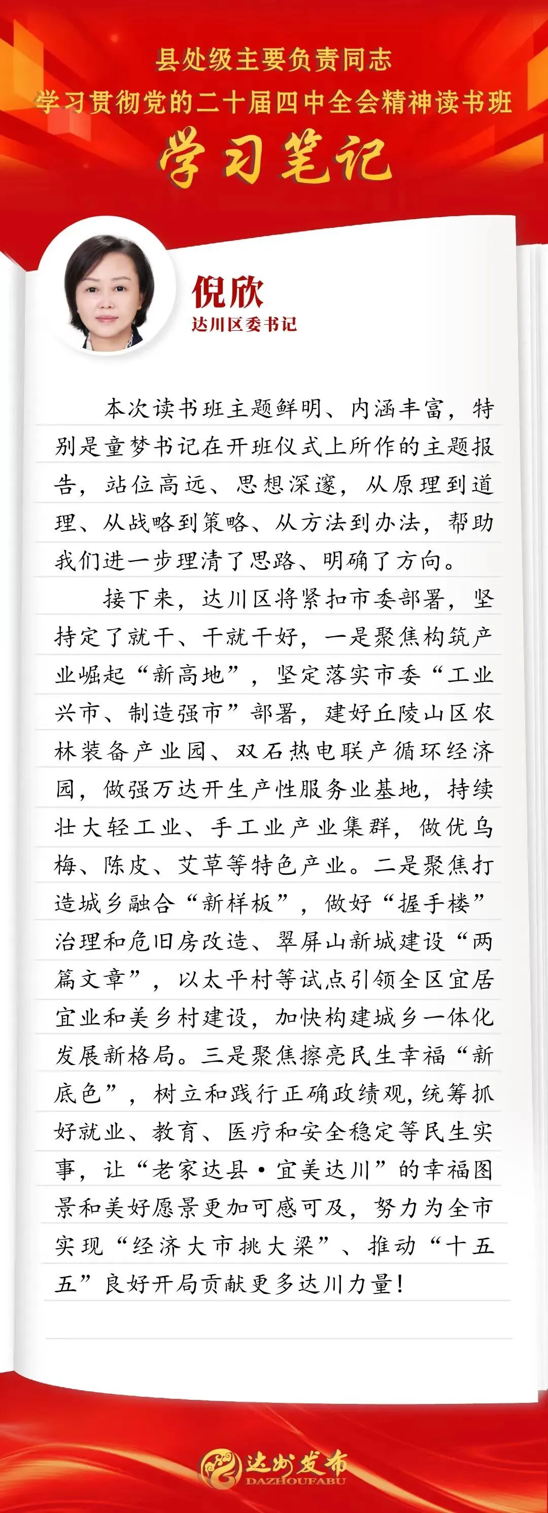 读书班结束后,达州各县(市、区)及市级各部门紧密结合实际,认真思考谋划,撰写学习笔记,既交流收获心得,也明确下一步务实举措。