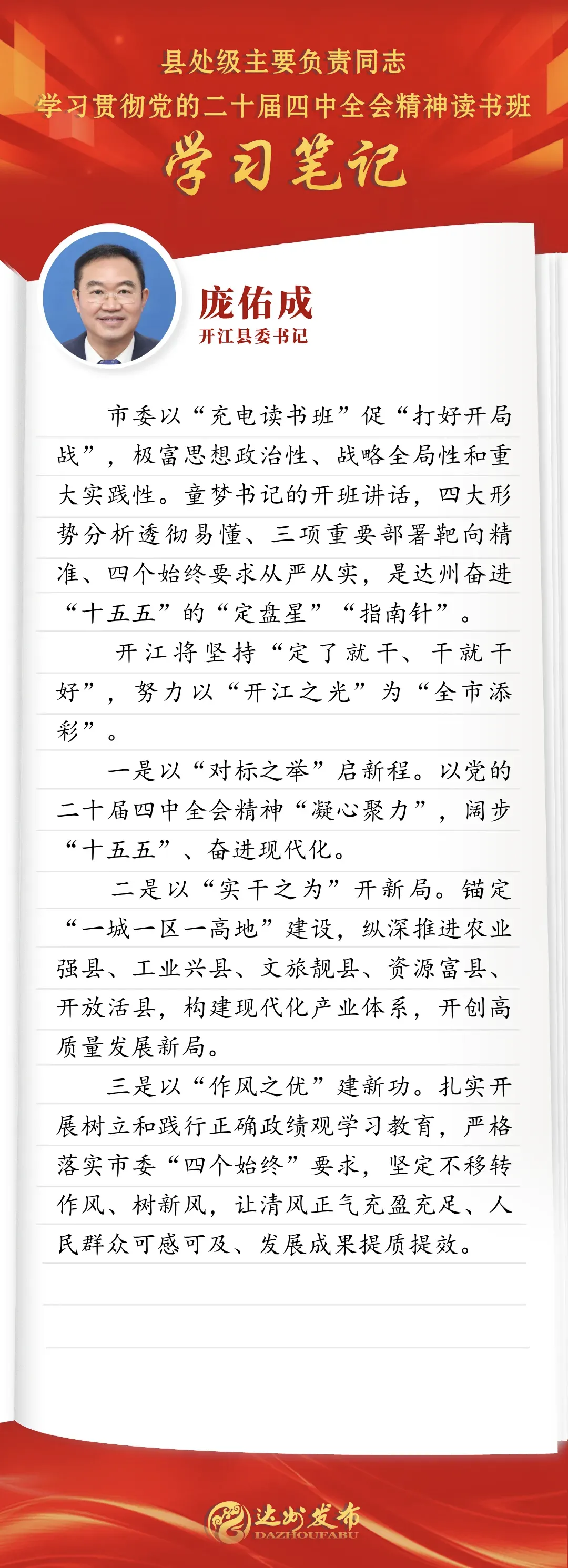 开江县委书记庞佑成“写”了哪些笔记