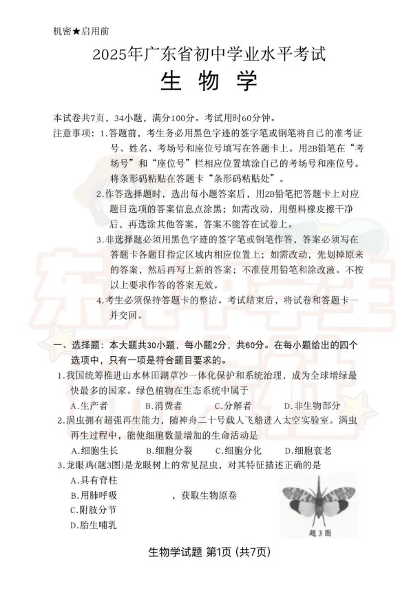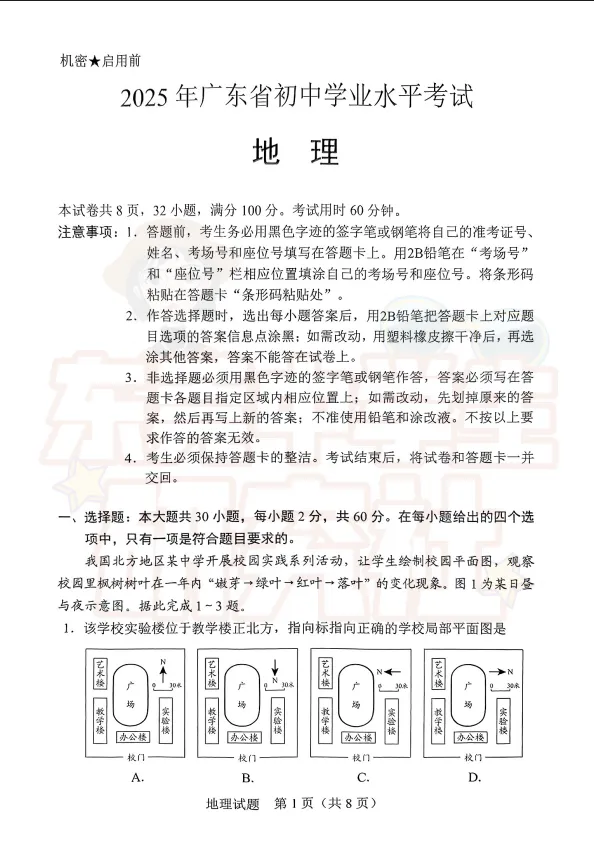 ▶【初二】东莞生地会考真题卷