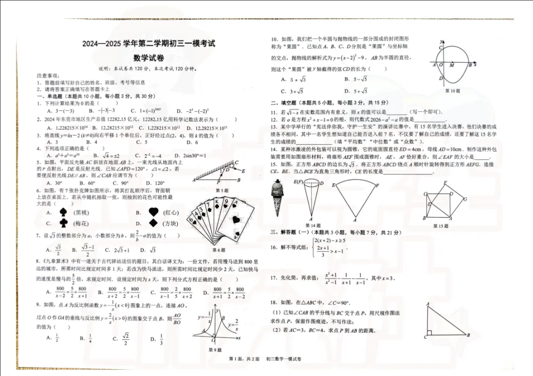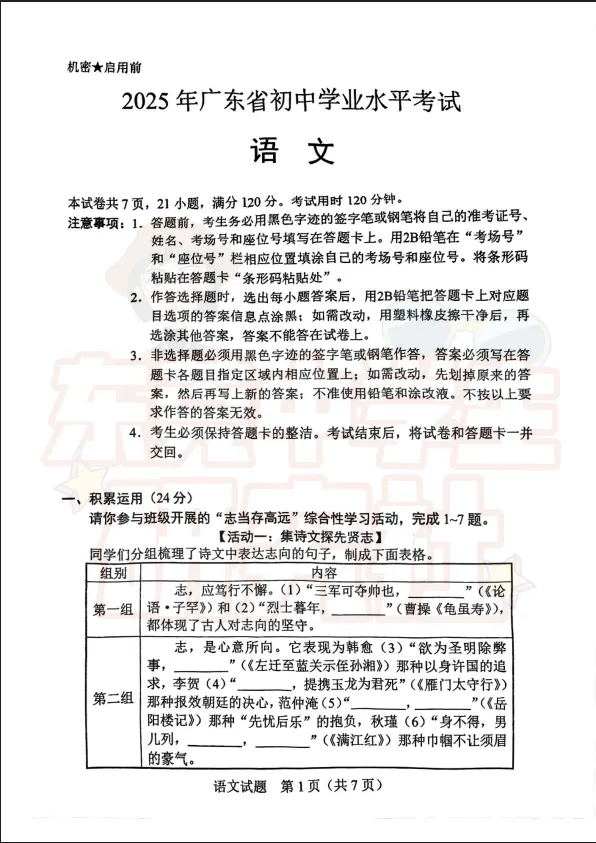 ▶【中考】25年东莞全科一模真题卷